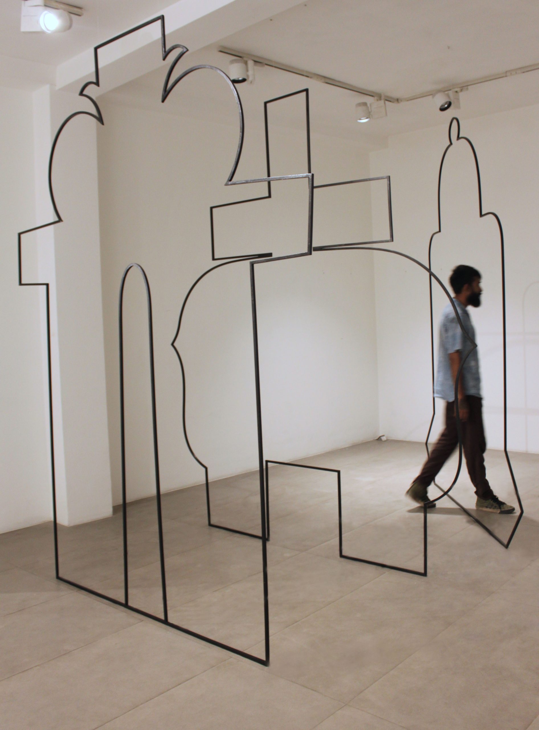 Ayesha Singh examines built architecture as spaces that embed power dynamics, expose the intricate politics inherent in nation-building exercises, migration, displacement, and functions as a location of identity–embodying aspiration, desire, and belief. Through critical spatial interventions that emphasize collaboration and coexistence, her works aim to counter established narratives to unpack layers of alteration and erasure of history through construction, restoration, and destruction. This results in Singh’s research being experienced through participatory performances with poetry, kinetic sculptures, sculptural line-drawings, public installations of scaffold and images that are created with community involvement, video, sculpture and often graphite drawings on paper.